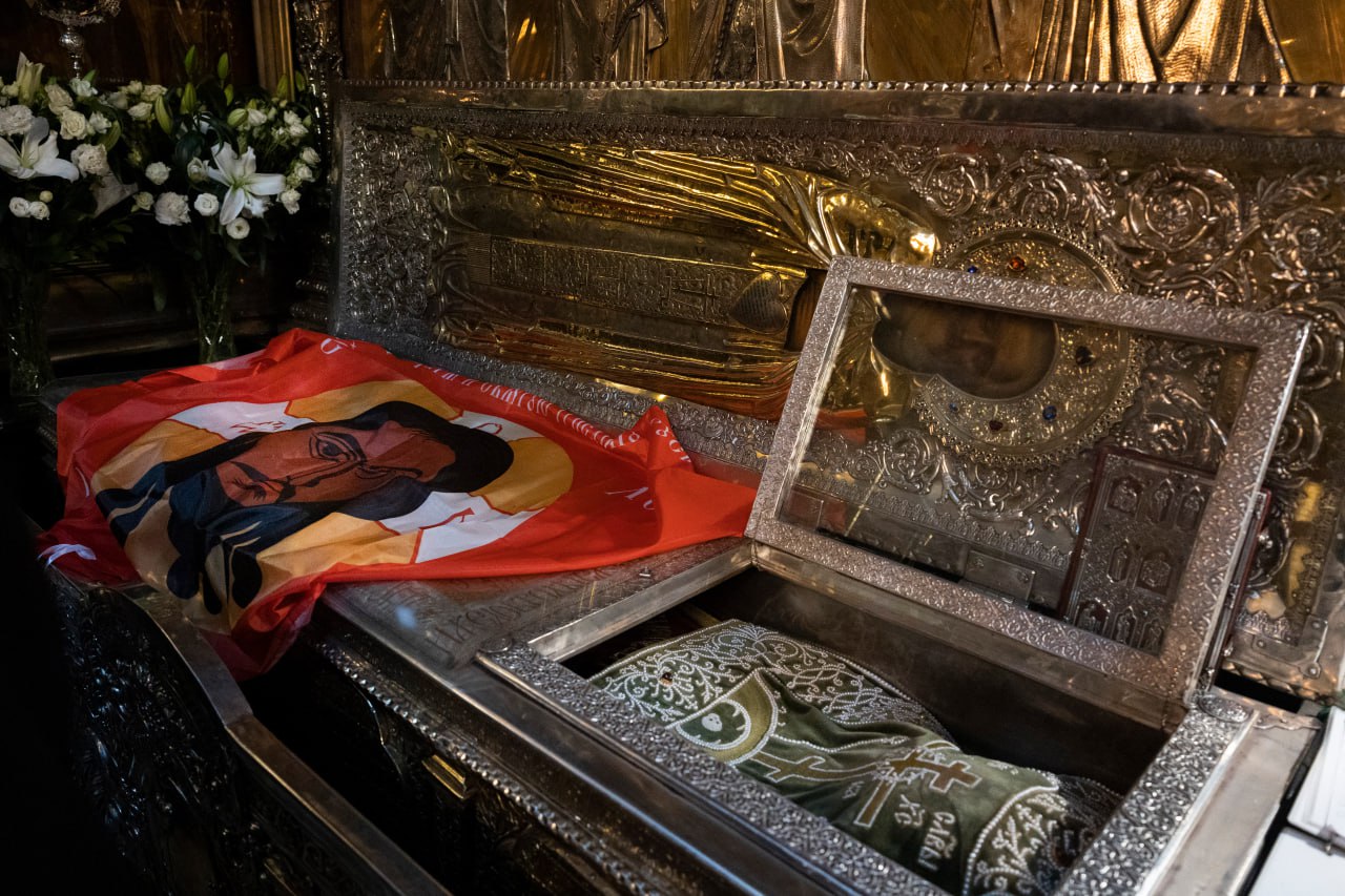 У мощей преподобного Сергия освящены знамена для воинов
