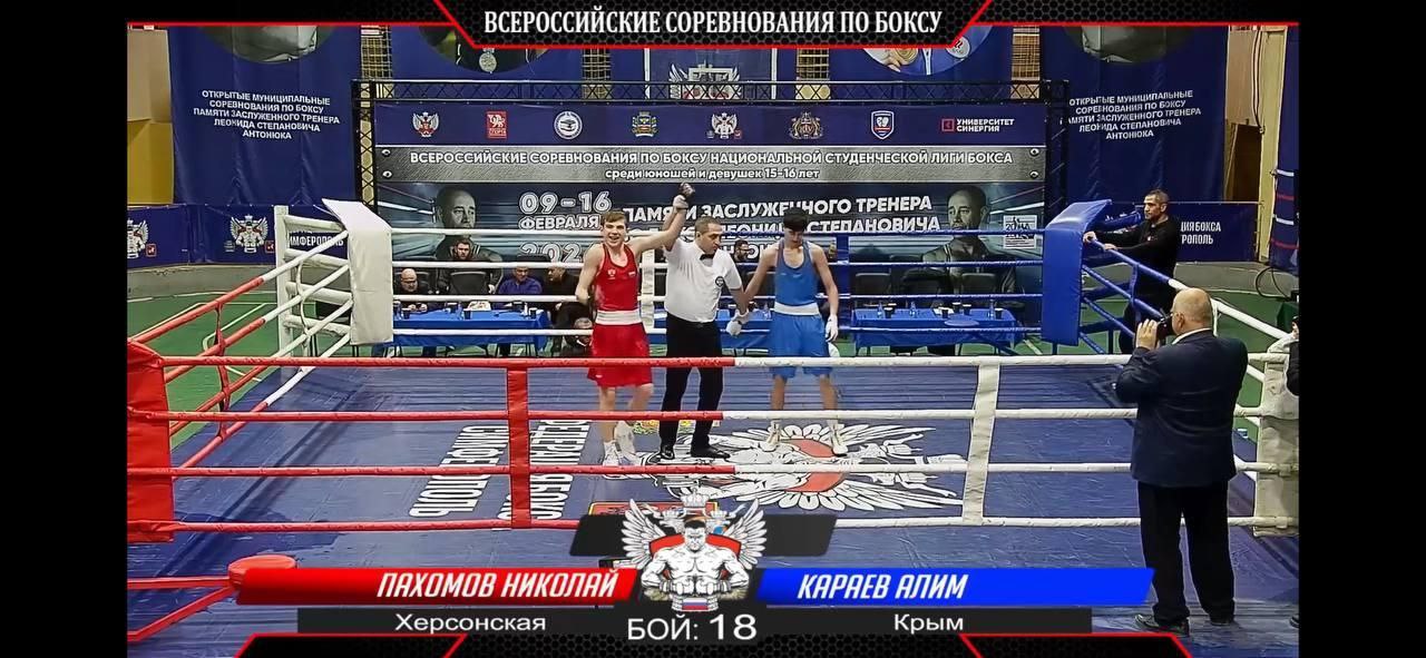 Николай Пахомов (60 кг) стартовал на Всероссийских соревнованиях Национальной студенческой лиги бокса с уверенной досрочной победы — явное преимущество, судьи остановили бой. Сегодня он продолжает выступление.