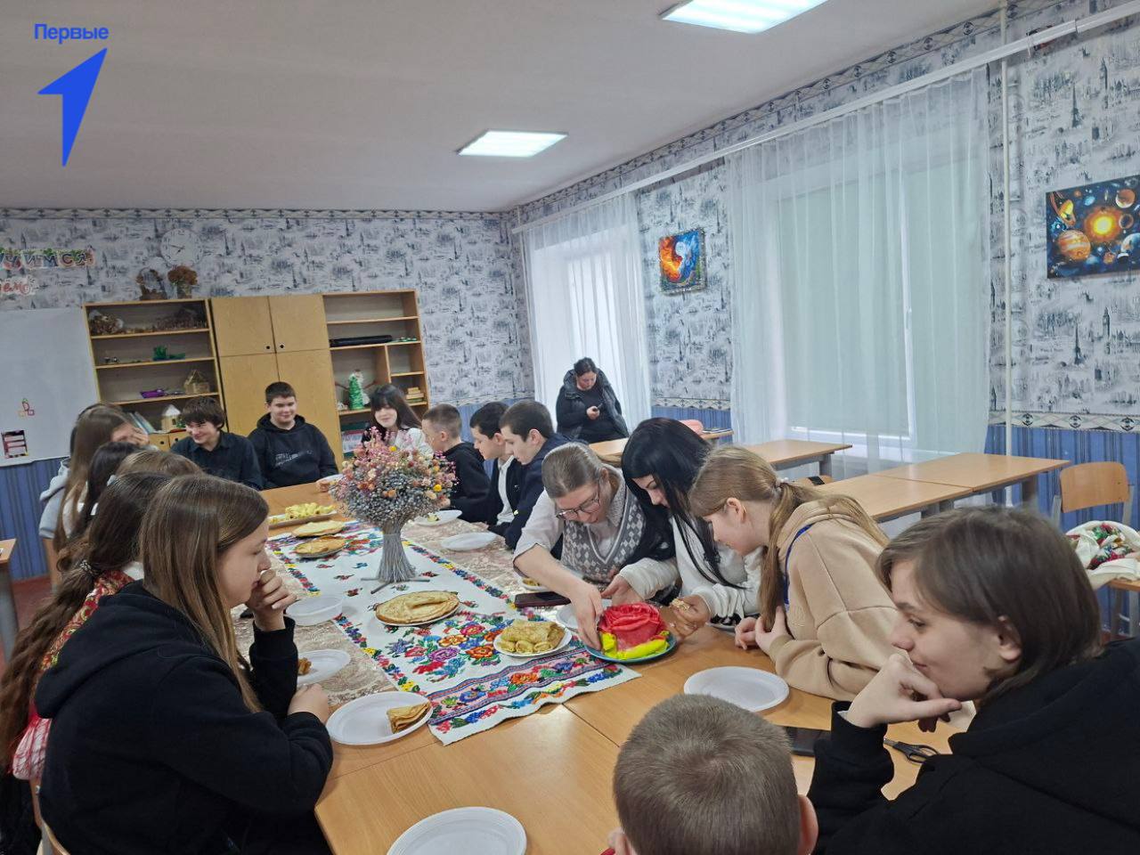 Вместе с советником директора по воспитанию Алиной Козуб ребята организовали блинный стол, на который каждый из участников принес блины. Школьники делились семейными рецептами и наслаждались вкусными блюдами.
