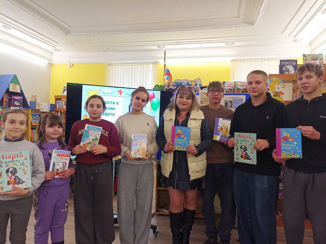 Библиотекарь Светлана Олейник предложила ребятам погрузиться в мир творчества этой талантливой авторки, рассказав о её жизни и творчестве. Агния Львовна была популярна не только в нашей стране: её стихи переведены на 72 языка и издаются по всему миру!