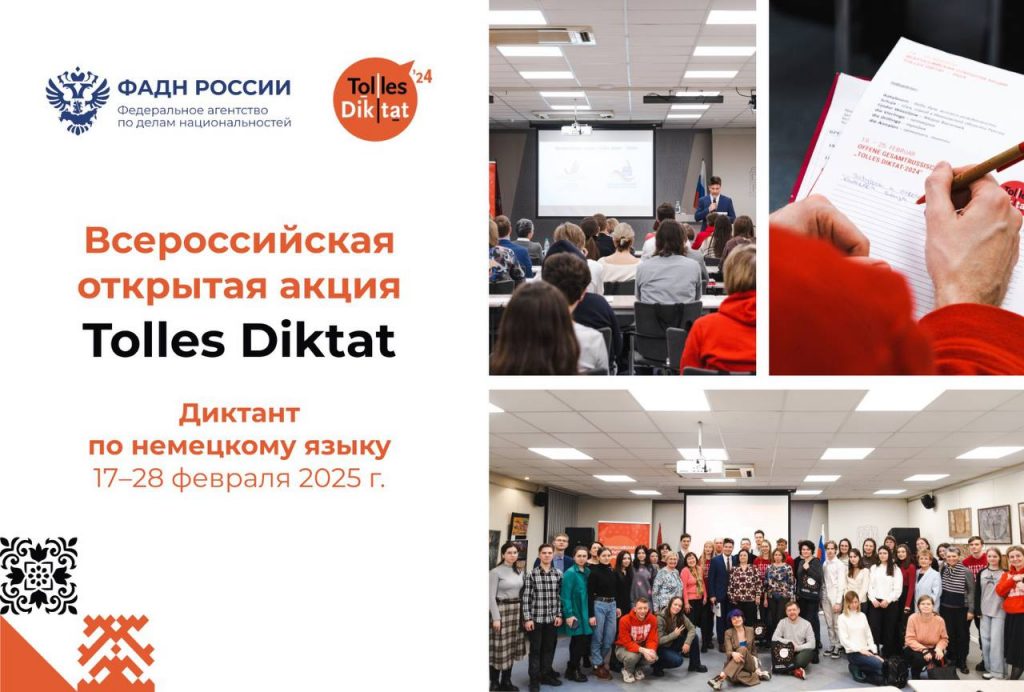 Всероссийская открытая акция «Tolles Diktat» в 2026 году состоится в период с 16 по 28 февраля в онлайн и и офлайн и форматах. К участию в акции приглашаются учащиеся 3 5-х, 6-7-х, 8 9-х и 10-11-х классов общеобразовательных учебных заведений, студенты вузов, участники клубов по возрождению традиций, культуры и языка российских немцев «Hallo Nachbarn! Neu» («Привет соседи! Новый»), клубов любителей немецкого языка, посетители центров встреч российских немцев. заинтересованные в проведении мероприятия, а также все желающие проверить свои языковые компетенции. Организациям, желающим принять участие в Акции в качестве площадки проведения (открытой или закрытой), необходимо пройти регистрацию на сайте tollesdiktat.rusdeutsch.ru до 13.02.2026.