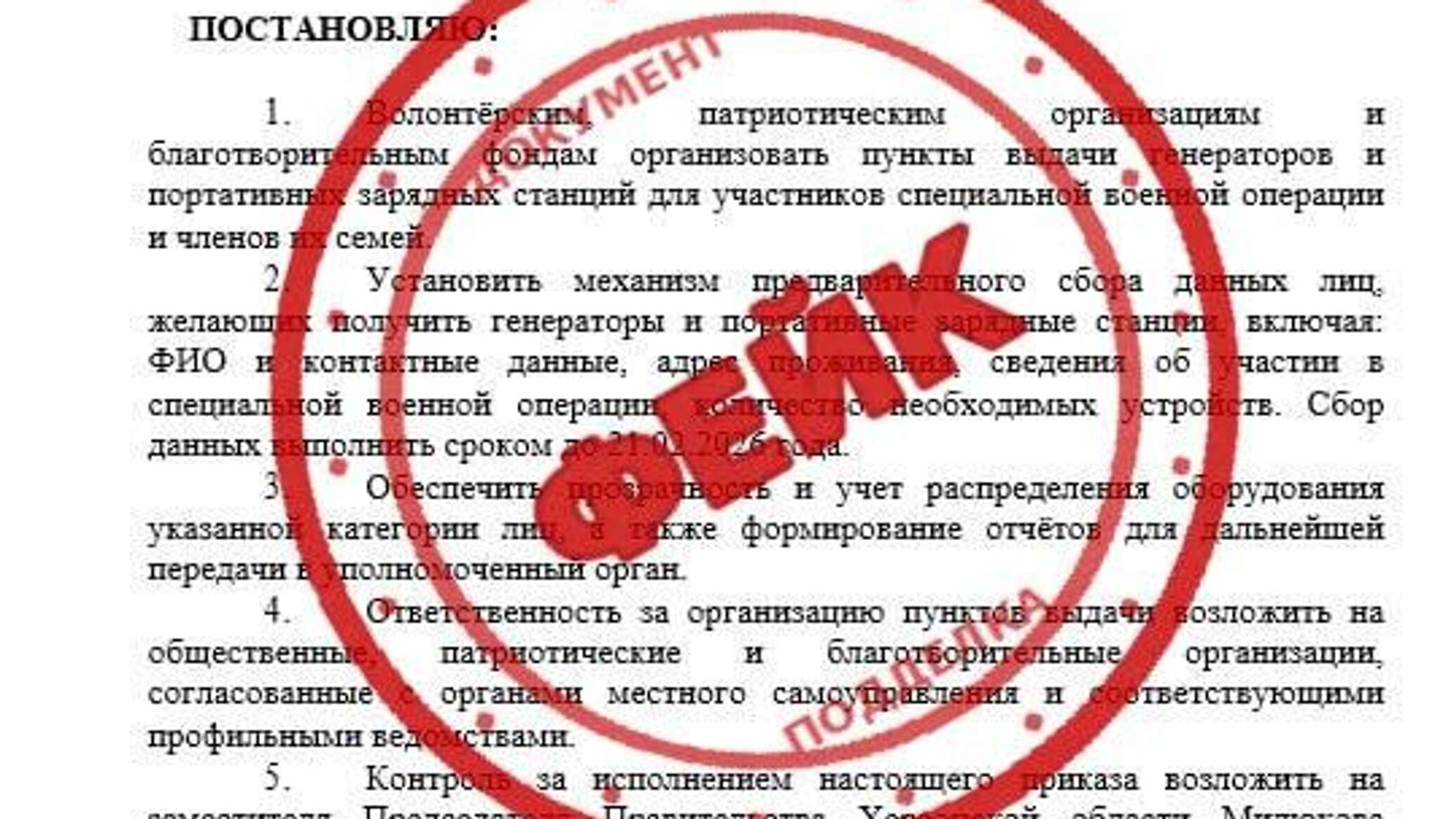 "Пропагандисты врага разгоняют в интернете очередную поделку – якобы мой "указ" о раздаче генераторов. Документ, которого в природе не существует", – написал он в своем Telegram-канале.