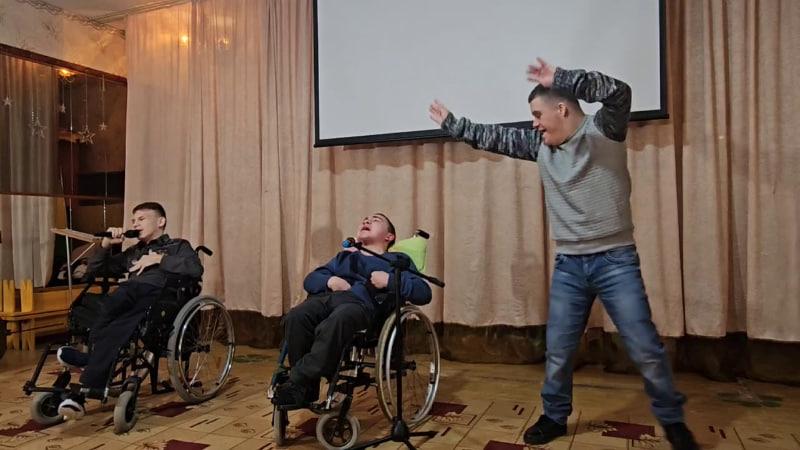 Воспитанники интерната не остались в долгу — они подарили гостям зажигательную песню и трогательные подарки, сделанные своими руками.