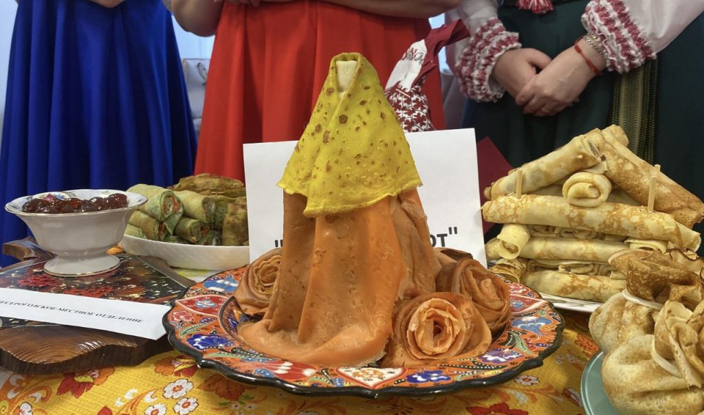 В штабе общественной поддержки «Единой России» местные отделения партии из четырнадцати округов Херсонской области устроили праздничный конкурс. Команды привезли блины с солеными и сладкими начинками. Были и необычные варианты: блины в виде долек арбуза и блинные пироги. Некоторые хозяйки готовили по бабушкиным рецептам.