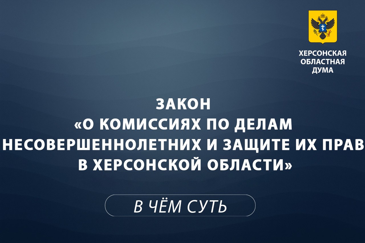 Херсонской областной Думой принят Закон Херсонской области от 11 июля 2024 года № 54-ЗХО «О комиссиях по делам несовершеннолетних и защите их прав в Херсонской области»