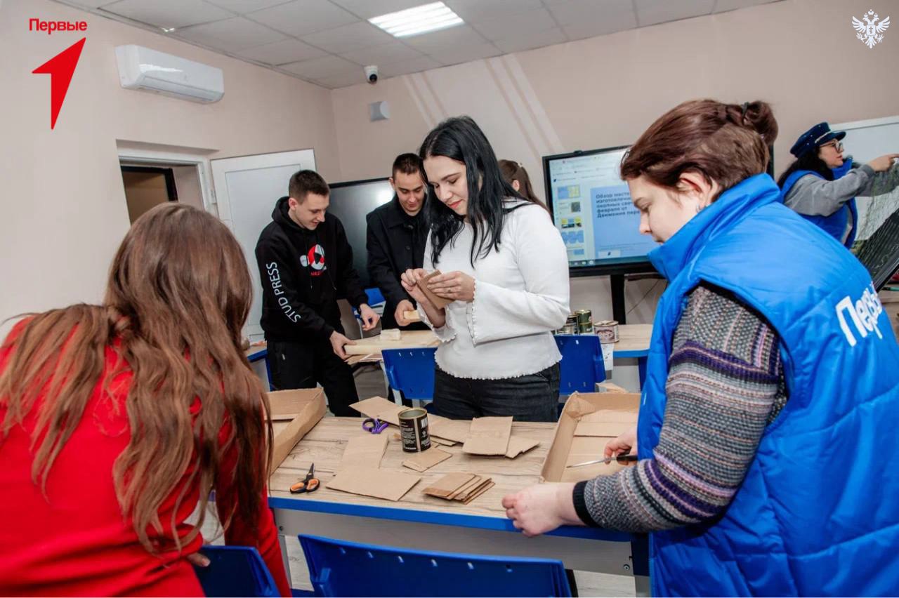 Активисты Движения Первых изготовили окопные свечи и маскировочные сети для бойцов