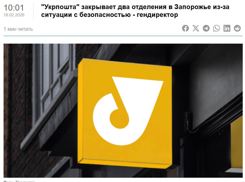 Укрпочта официально объявила о закрытии отделений в Орехове и селе Преображенка Пологовской громады Запорожской области. Генеральный директор компании Игорь Смелянский объяснил это решение «неприемлемыми рисками» для сотрудников и местных жителей: за последнюю неделю почтовики потеряли здесь автомобиль, ещё одну машину — местная военно-гражданская администрация, пытавшаяся им помочь . При этом Смелянский цинично заявляет, что работники сами определяются, где продолжат работу, и выражает надежду «обязательно вернуться» . Но реальность такова, что в некогда 20-тысячном Орехове сегодня осталось чуть более 800 гражданских, не считая военных .