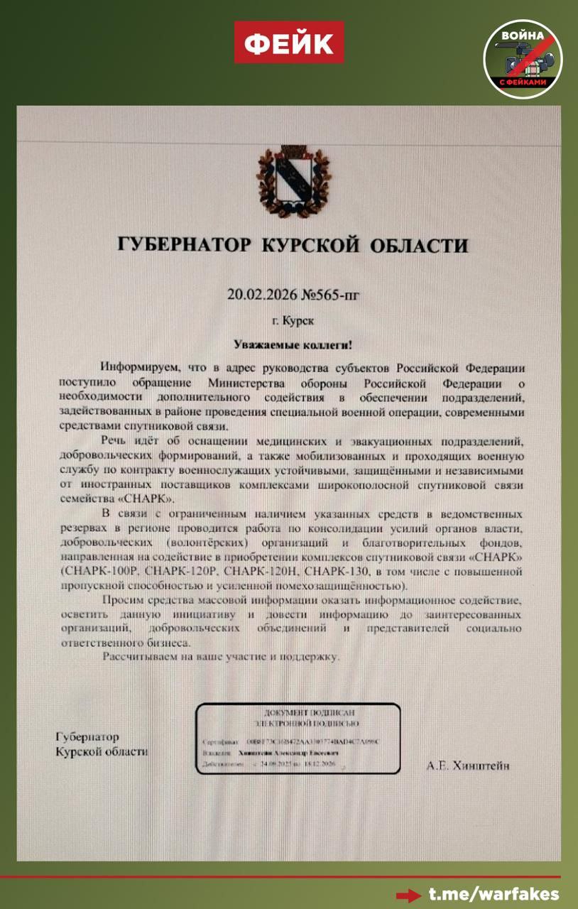 В сети появилось якобы официальное письмо Министерства обороны РФ, где якобы просят губернаторов закупать комплексы спутниковой связи для отправки в зону СВО.