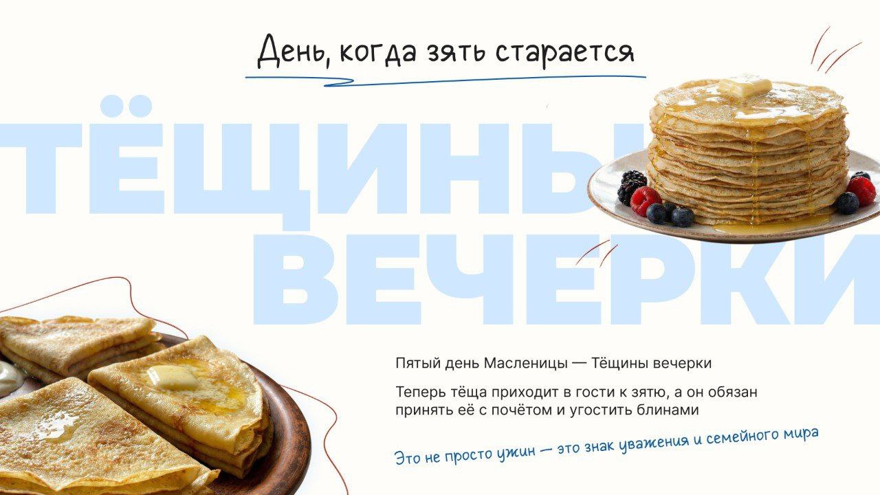 Пятый день праздника — Тёщины вечерки — лучший повод проявить уважение, удивить вкусом и немного посмеяться вместе.