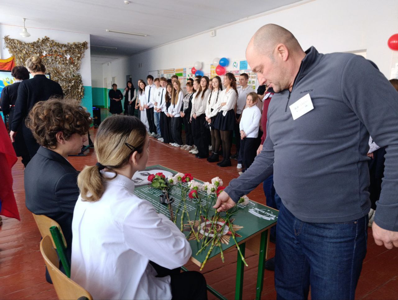 На открытие Парты Героя в память о Сергее Пантелеевиче Дорогане собрались педагогический коллектив школы, ученики и почётные гости. Среди них депутат облсовета, первый заместитель секретаря Херсонского регионального отделения «Единой России», заместитель председателя Херсонской областной Думы Павел Тропкин. А также начальник Чернянского территориального отдела Екатерина Тесля.