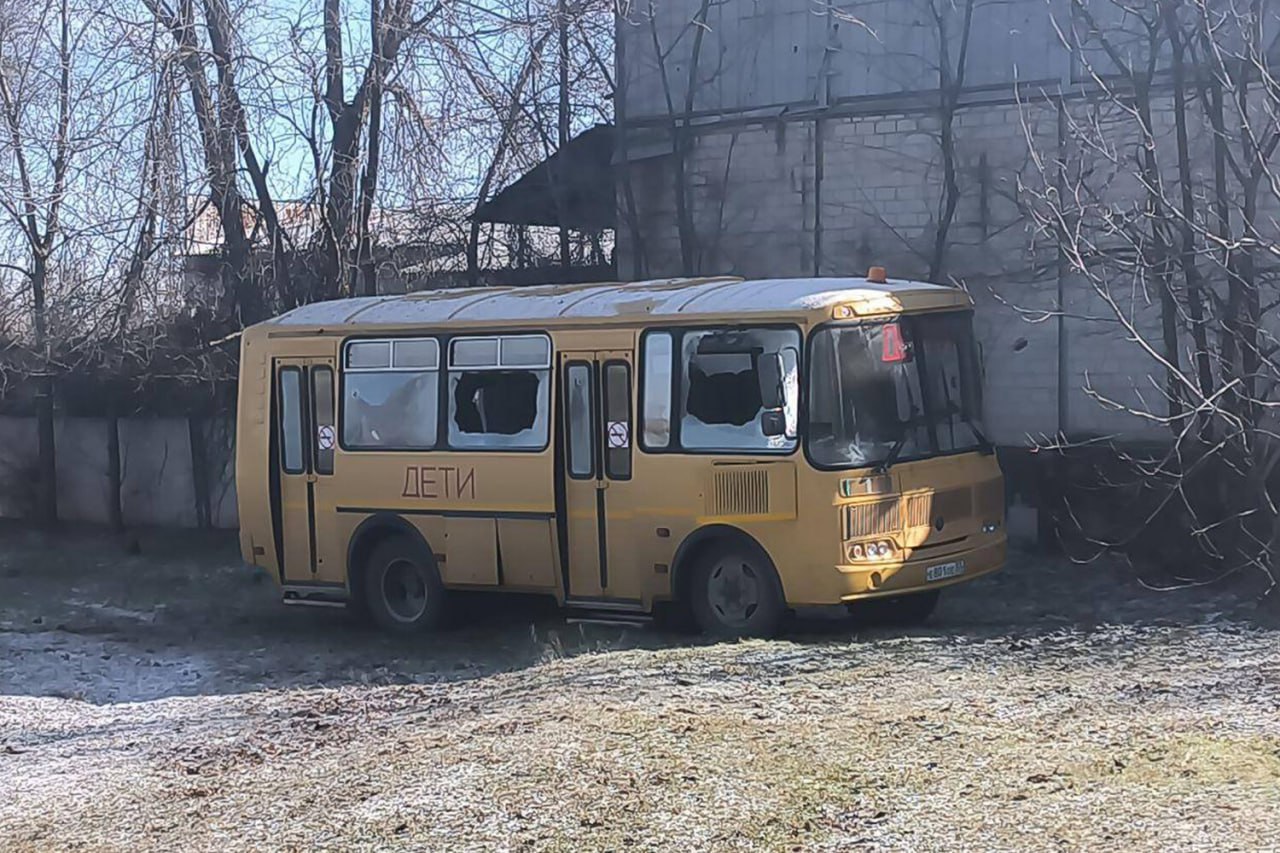 Сегодня был нанесен удар по школе в городе Васильевка, в результате которого были повреждены школьные автобусы и территория вокруг здания. К счастью, обошлось все без пострадавших.