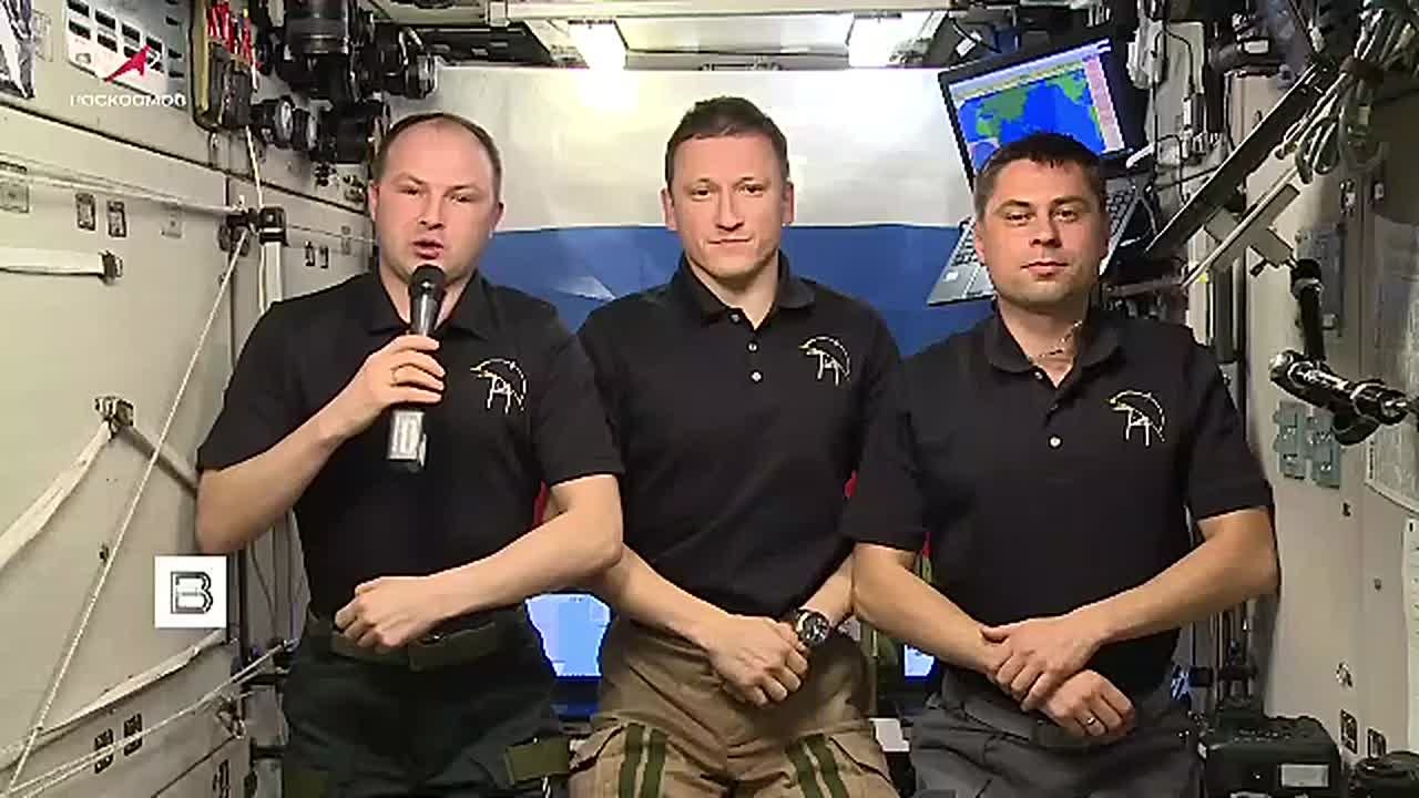 Российские космонавты Сергей Микаев, Сергей Кудь-Сверчков и Андрей Федяев с МКС поздравили россиян с Днём защитника Отечества.