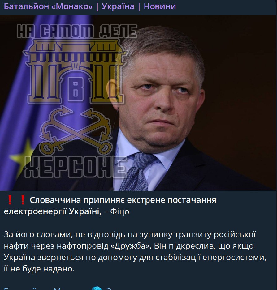 По его словам, это ответ на остановку транзита российской нефти через нефтепровод «Дружба». Он подчеркнул, что если Украина обратится за помощью для стабилизации энергосистемы, она не будет предоставлена.