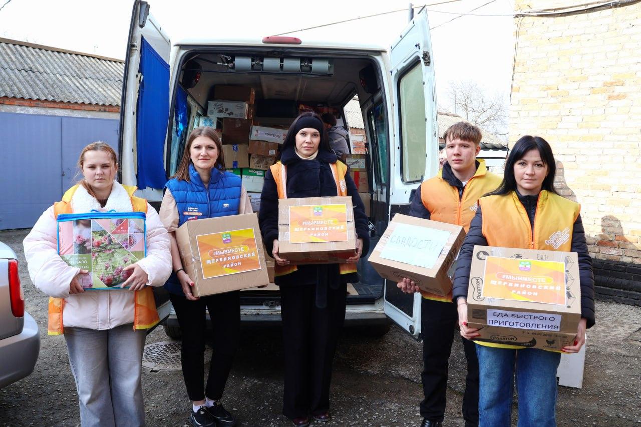 Щербиновцы подготовили продукты питания, консервы, крупы, сахар, макаронные изделия, масло растительное, гигиенические товары для мирных жителей Херсонской области.