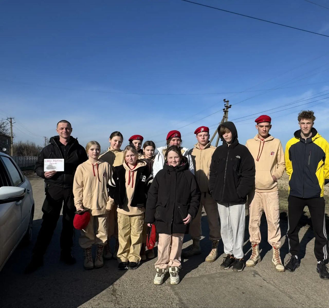 Юнармейцы Марьяновского отряда "Соколы" поздравили мужчин села с Дем Защитника Отечества