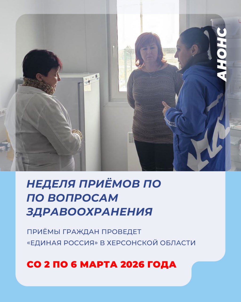Единая Россия в Херсонской области проведёт неделю приёмов граждан по вопросам здравоохранения