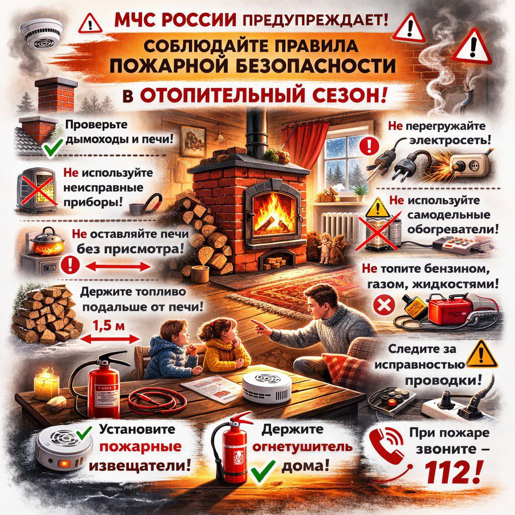 МЧС России предупреждает о необходимости соблюдать правила пожарной безопасности в отопительный сезон