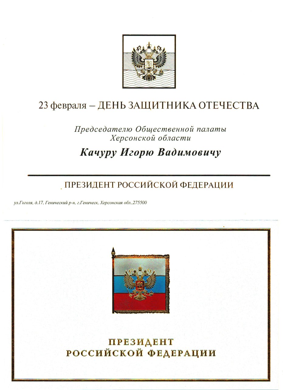 председателю Общественной палаты Херсонской области Игорю Вадимовичу Качуру.