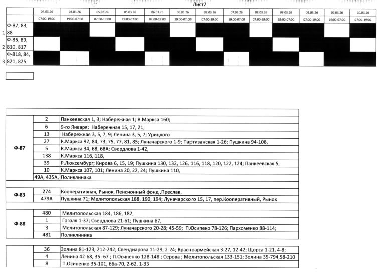 Адреса, включенные в график отключений: