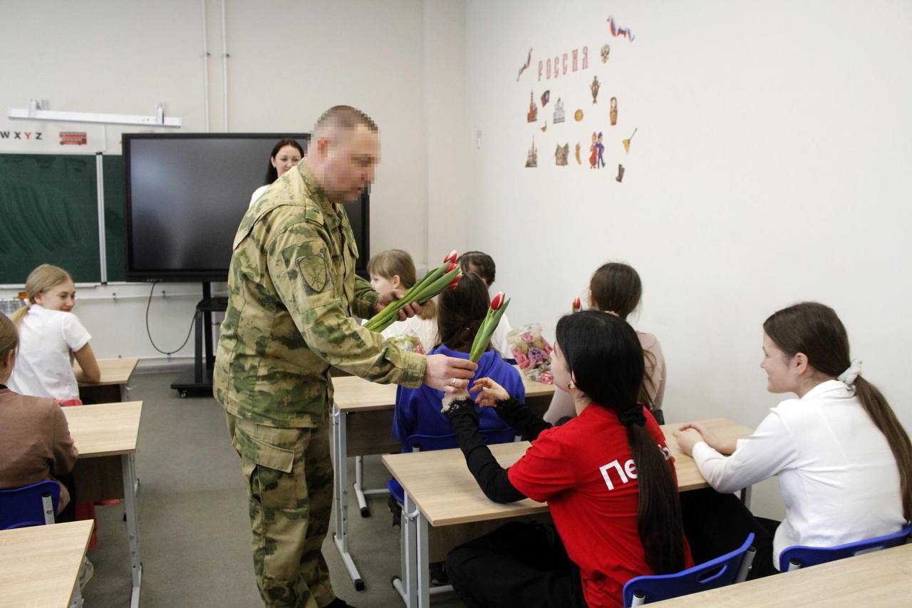 В канун Международного женского дня военнослужащие Управления Росгвардии по Херсонской области совместно с представителями регионального отделения Общероссийского общественно-государственного движения детей и молодёжи «Движение Первых» посетили подшефный кадетский класс в санаторной школе-интернате города Геническа.