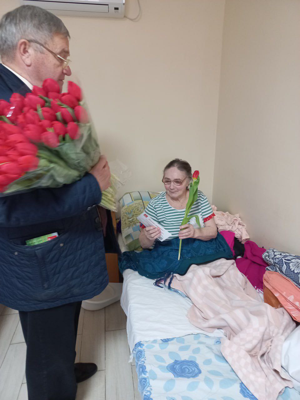 Александр Петрович поздравил прекрасную половину коллектива и жительниц пансионата с наступающим праздником. В программе визита были не только официальные поздравления, но и душевное общение.