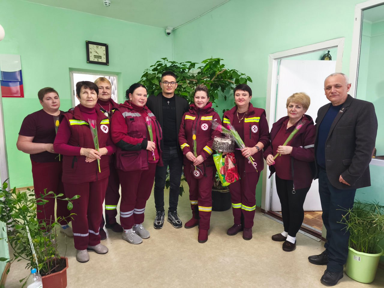 Женские коллективы больниц поздравили и в Чаплинке. Секретарь первичного отделения Единой России Максим Кацидан вместе со сторонниками партии поздравил сотрудниц Чаплинской центральной больниц, а председатель местного совета депутатов Владимир Домбровский поздравил сотрудниц Чаплинской подстанции скорой медицинской помощи.
