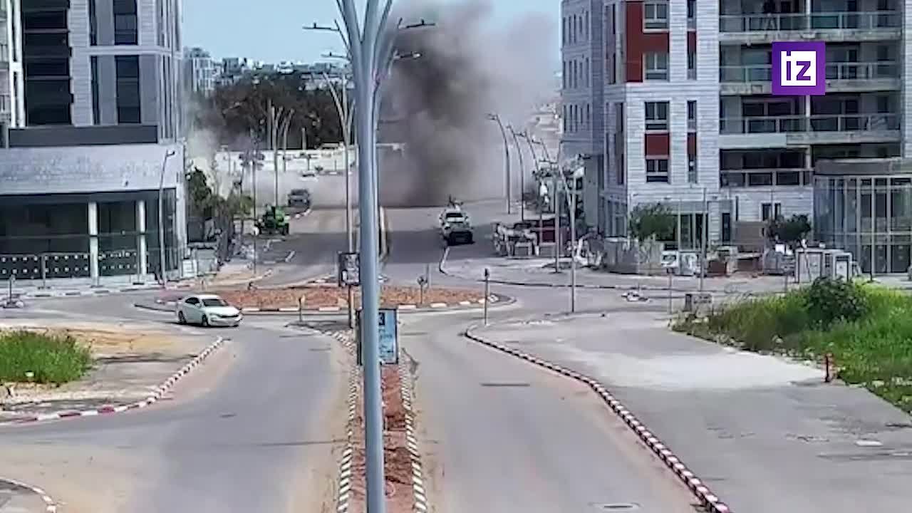 Момент и последствия иранского удара по израильскому Тель-Авиву — снаряд упал прямо посреди улицы, разрушив проезжую часть
