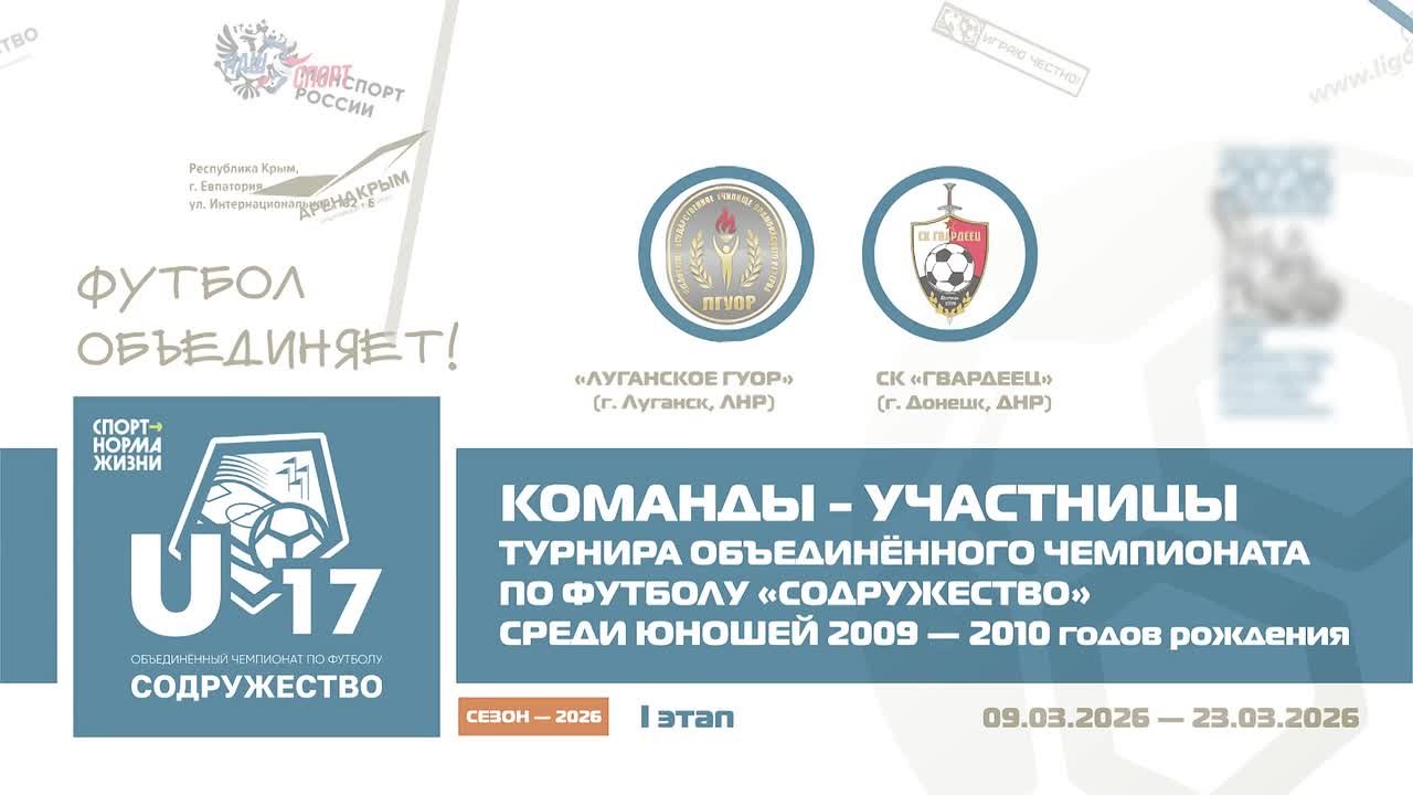 Лига «Содружество» приветствует участников I этапа турнира Объединённого чемпионата по футболу "Содружество" среди юношей 2009-2010 годов рождения (U-17)