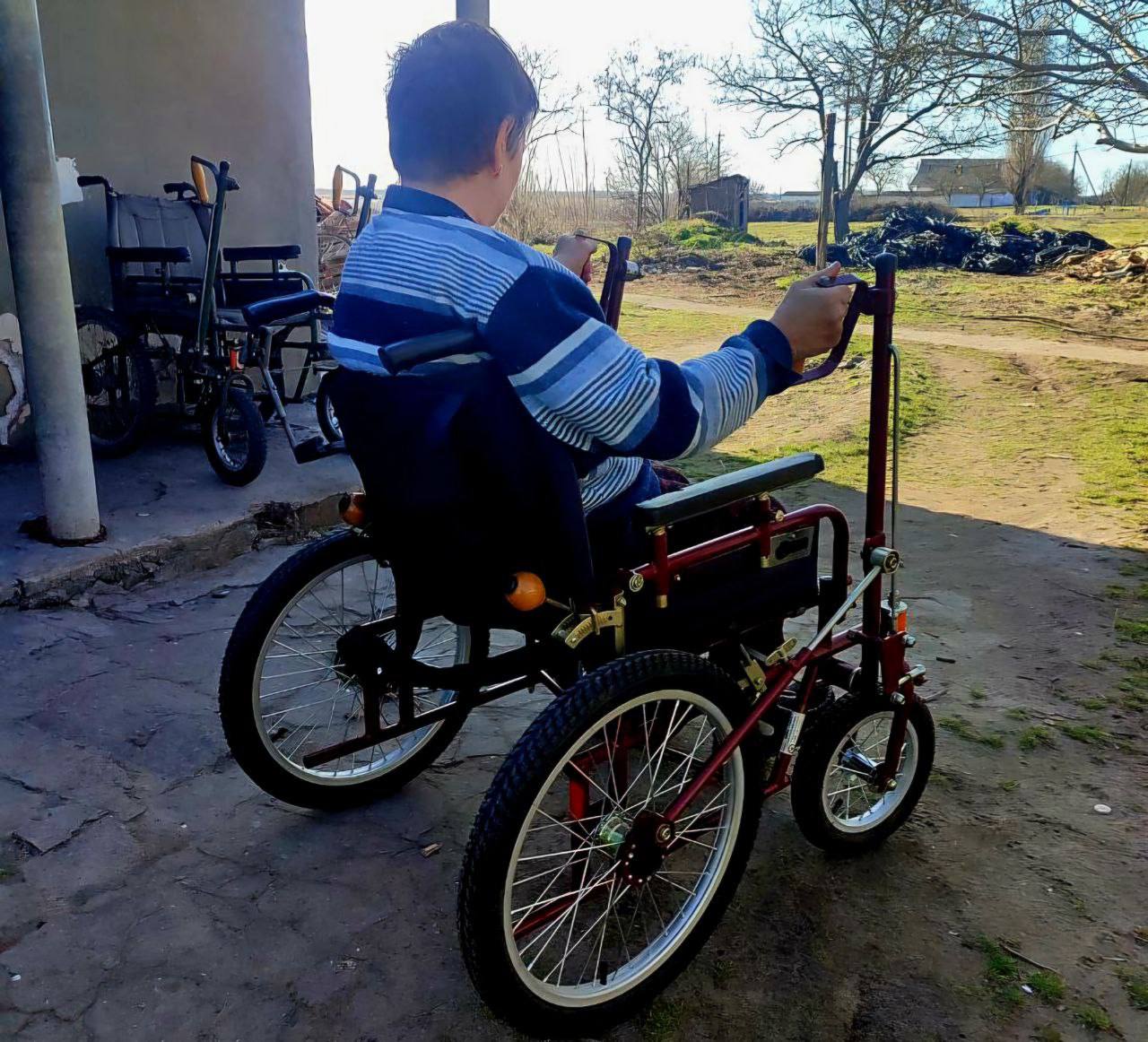 Женщина инвалид I группы, и живёт в прифронтовом селе. Благодаря главе округа Виталию Титаренко и омбудсмену региона Сергею Георгиеву, она станет более мобильной и ей будет хоть немного легче передвигаться.