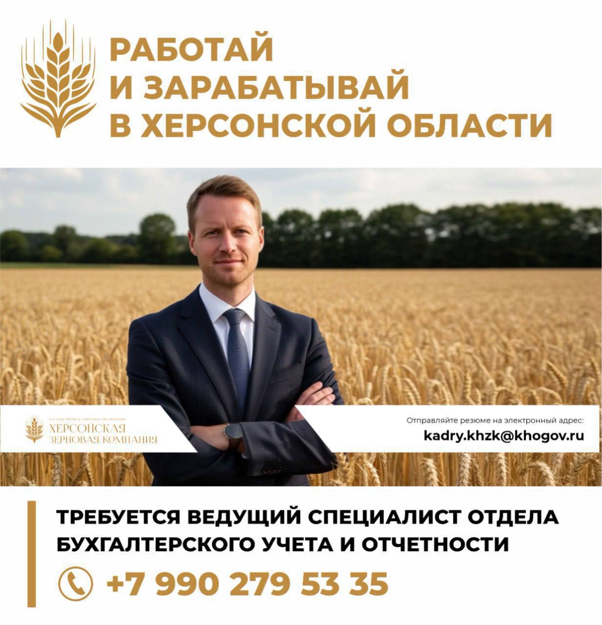 Херсонская зерновая компания приглашает ведущего специалиста отдела бухгалтерского учета и отчетности