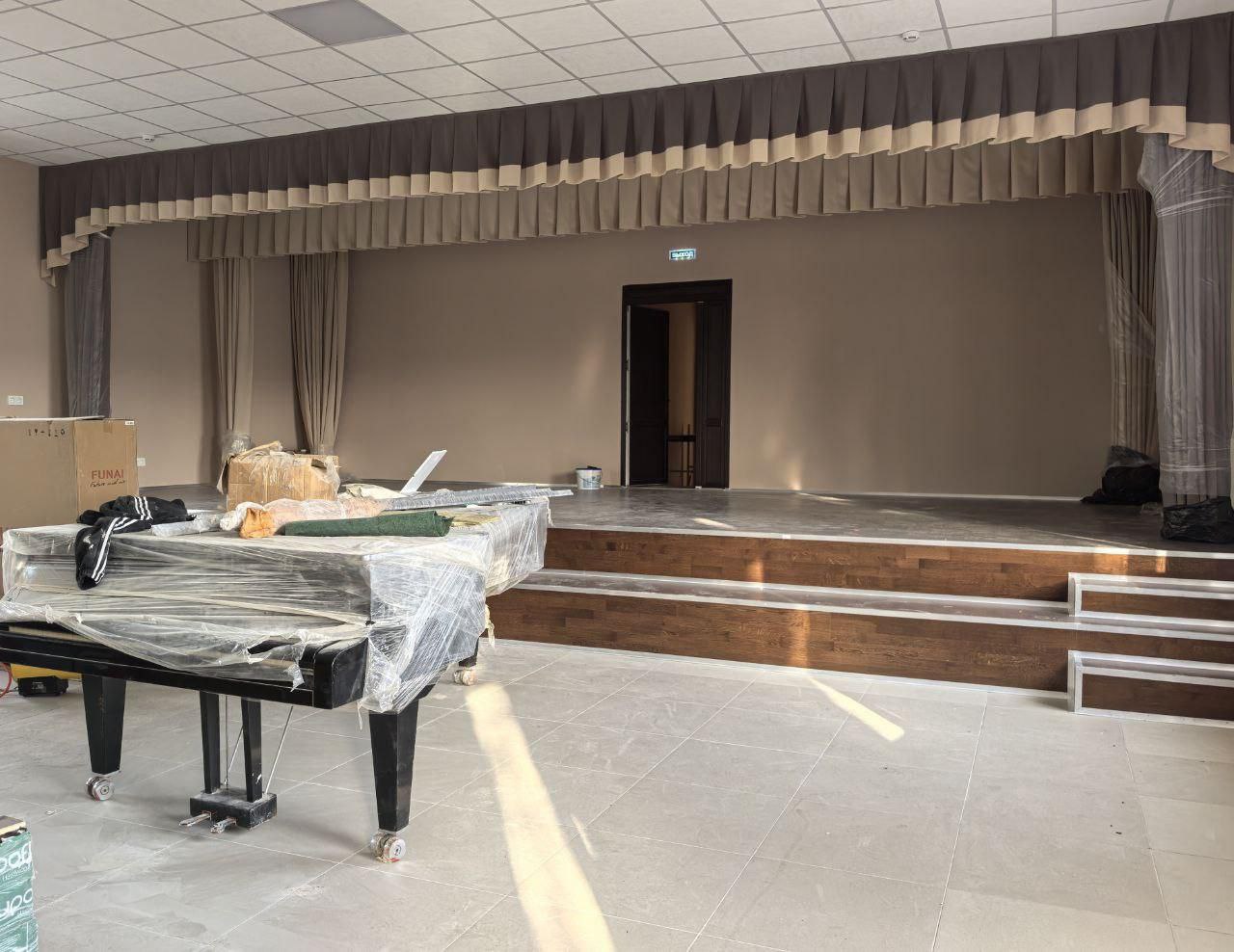 Оснащение: часть музыкальных инструментов уже перевезена и ждет своих юных виртуозов.