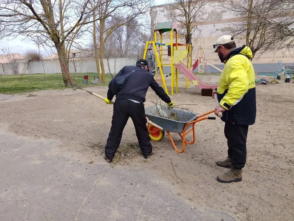 На этой неделе коммунальщики провели уборку в Днепрянах: привели в порядок детскую площадку и парковую зону.