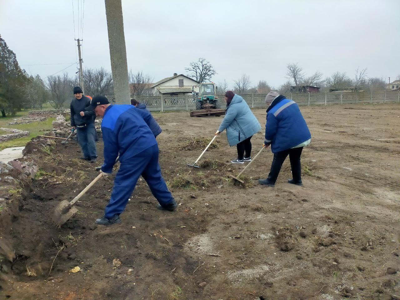Активисты ТОС "Роза", сотрудники "Коммунального сервиса Каховки", команда проекта, волонтёры и сельхозпроизводители снова дружно вышли на благоустройство территории: расчищают, выравнивают, вывозят камни и землю.