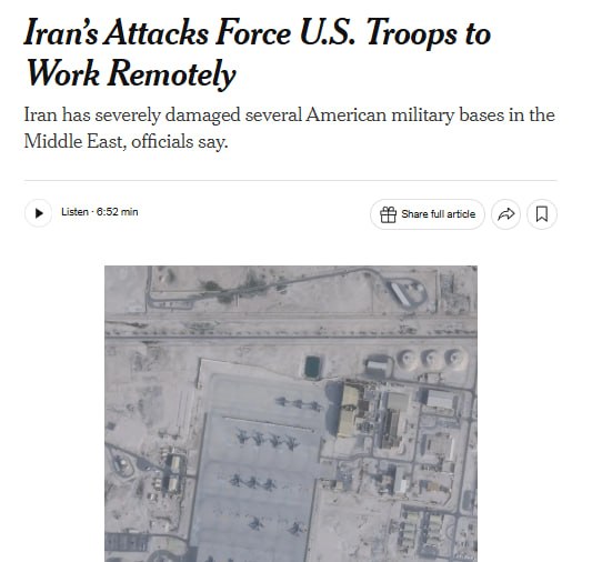 Удары Ирана по базам США на Ближнем Востоке вынудили американских военных покинуть ряд объектов и работать удаленно, — The New York Times.