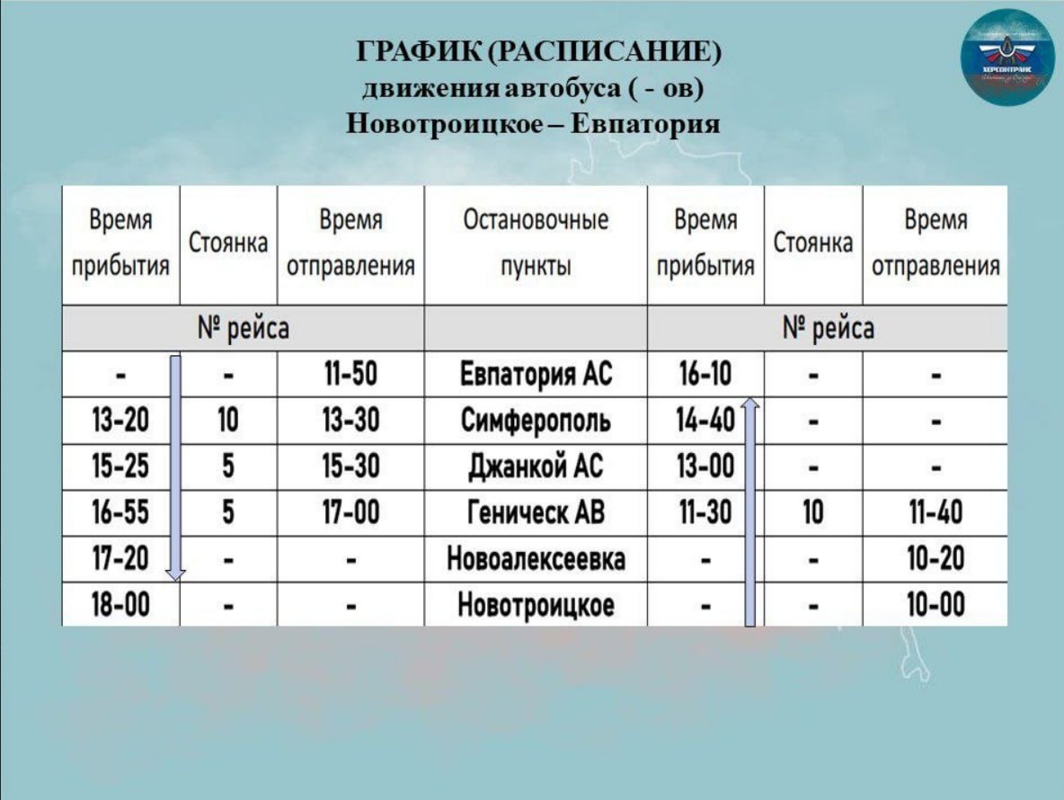 Время в пути составит порядка шести часов: выезд из Новотроицкого в 10:00, прибытие в Евпаторию в 16:10. Рейсы будут выполняться через день.