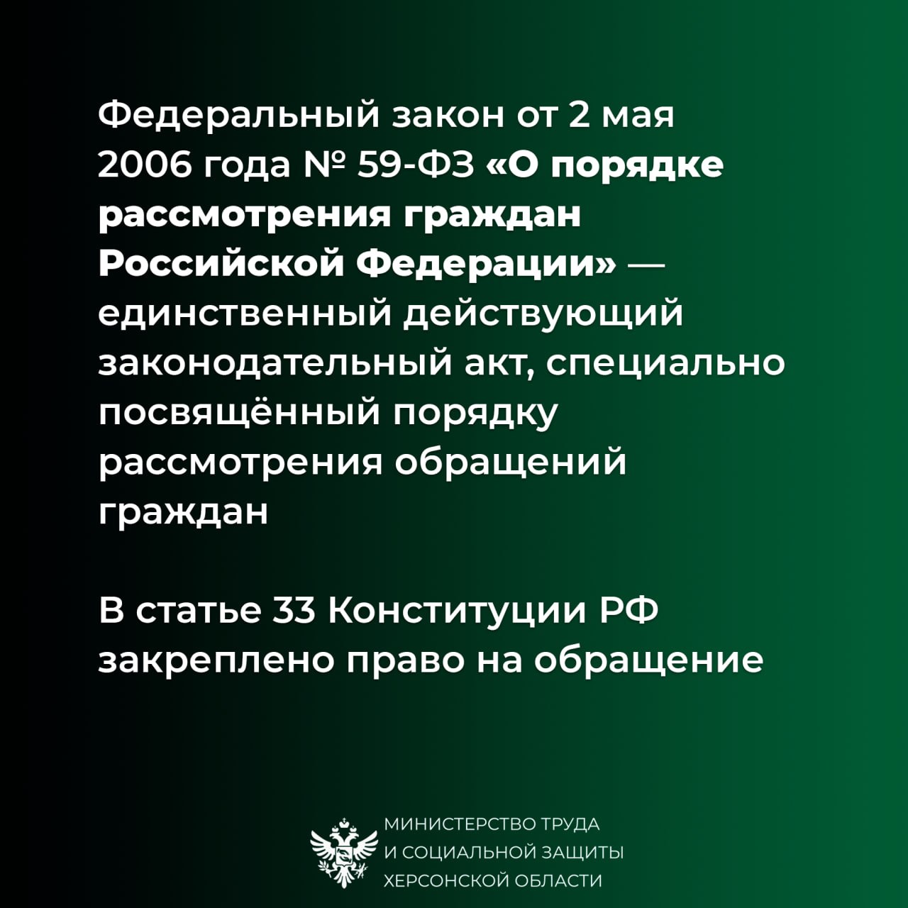 Право гражданина на обращение закреплено ст. 33 Конституции РФ. Рассмотрение обращений граждан осуществляется бесплатно.