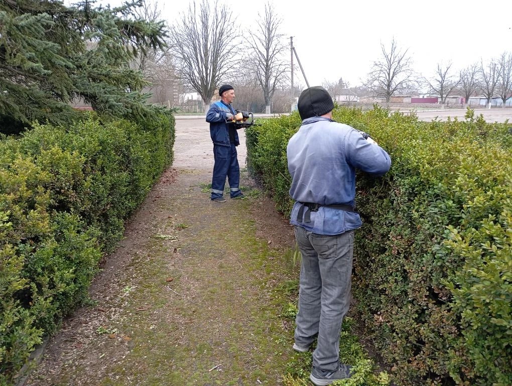 В с. Преображенка приводят в порядок аллеи: обрезали кусты, убрали мусор.