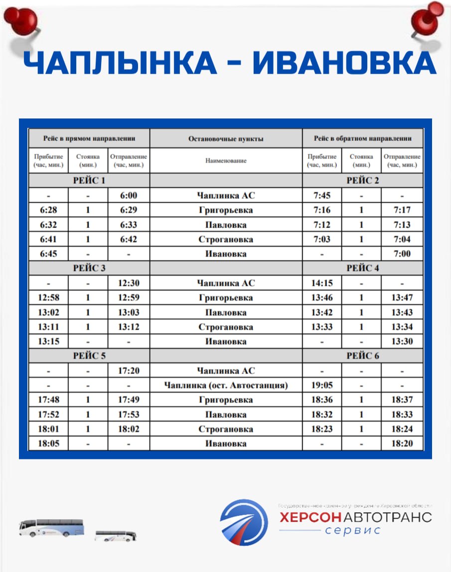 ВНИМАНИЕУважаемые жители и гости Херсонской области!Сообщаем, что с 1 апреля 2026 года вносятся изменения в график движения общественного транспорта по маршрутам: № 133 «Новотроицкое АС - Новореповка» № 141 «Чаплинка АС - Ивановка» ...