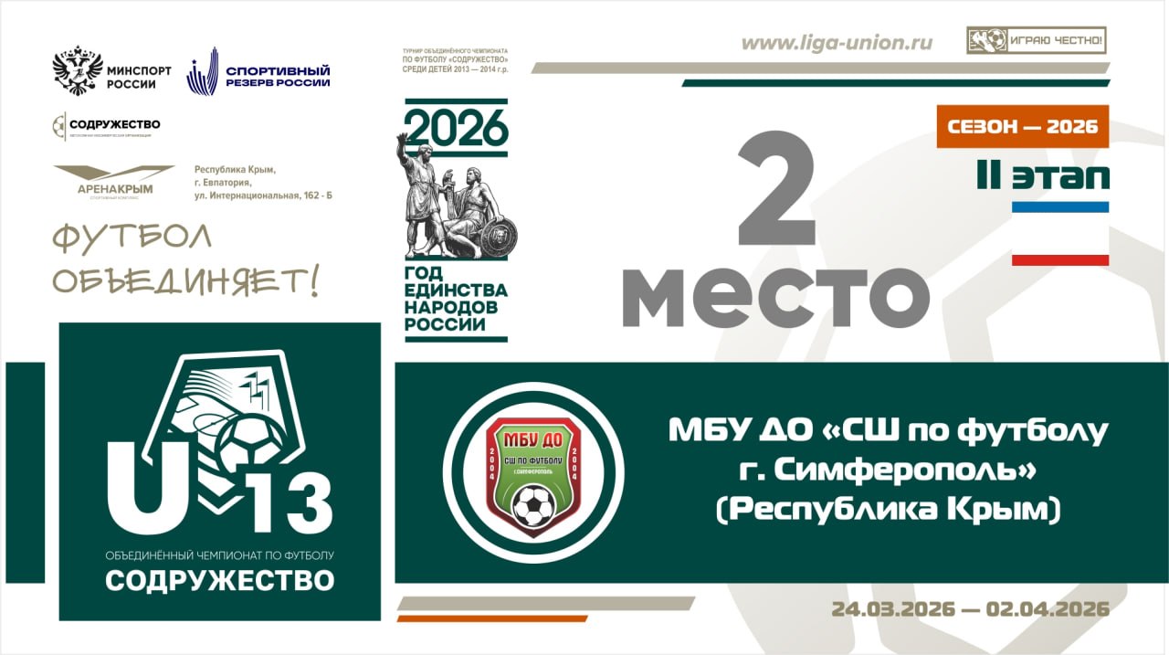 #результатыU13 Серебро второго этапа турнира Объединённого чемпионата по футболу «Содружество» среди детей 2013-2014 годов рождения достаётся МБУ ДО "СШ по футболу" (г. Симферополь, Республика Крым)!