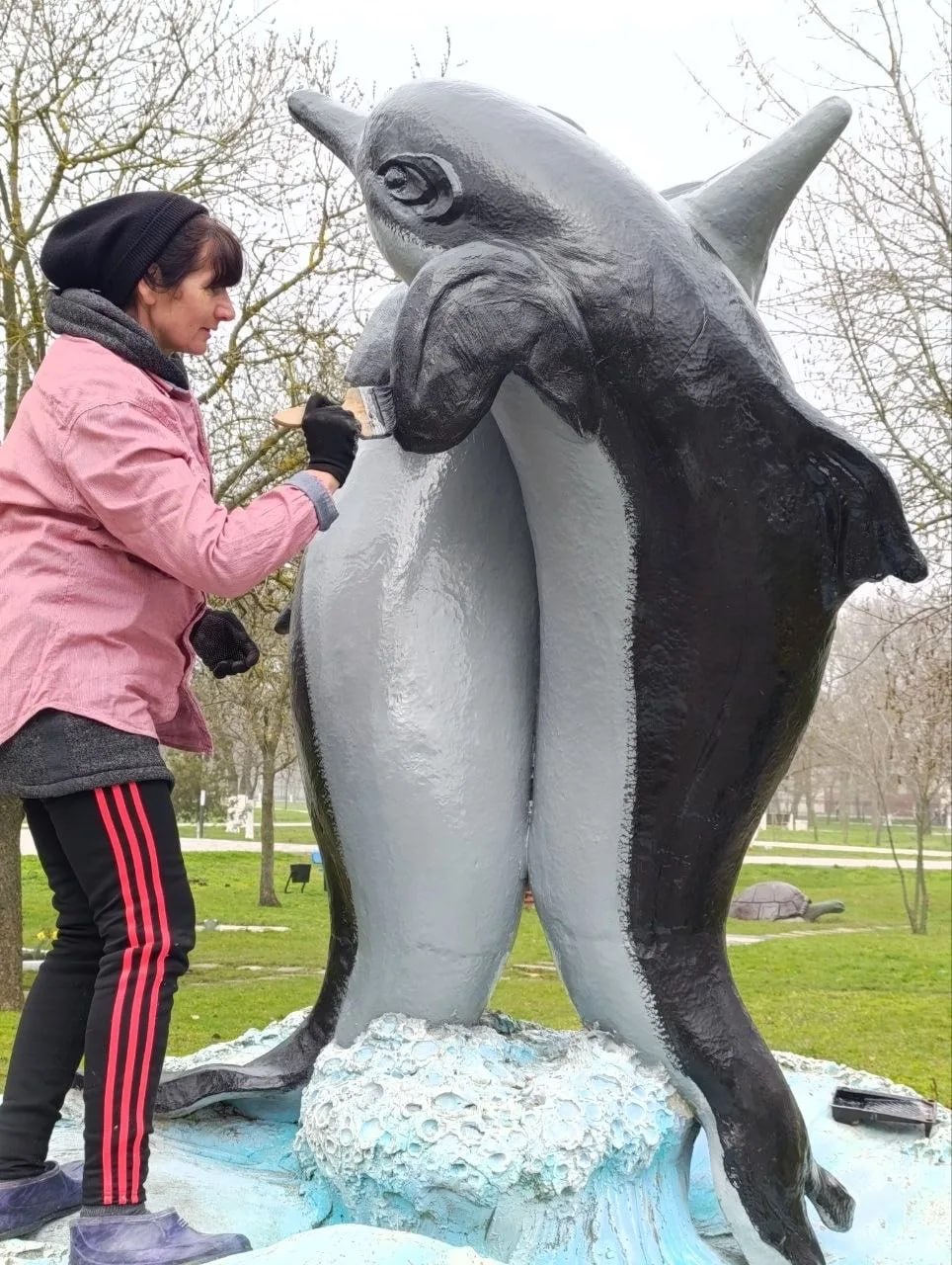 - Покрашены скульптуры «Дельфины» и «Черепашка».