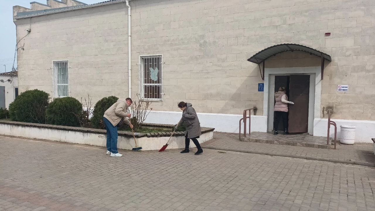 Они привели в порядок территорию у клуба: собрали мусор, очистили дорожки и обустроили клумбы, готовя их к весеннему сезону.