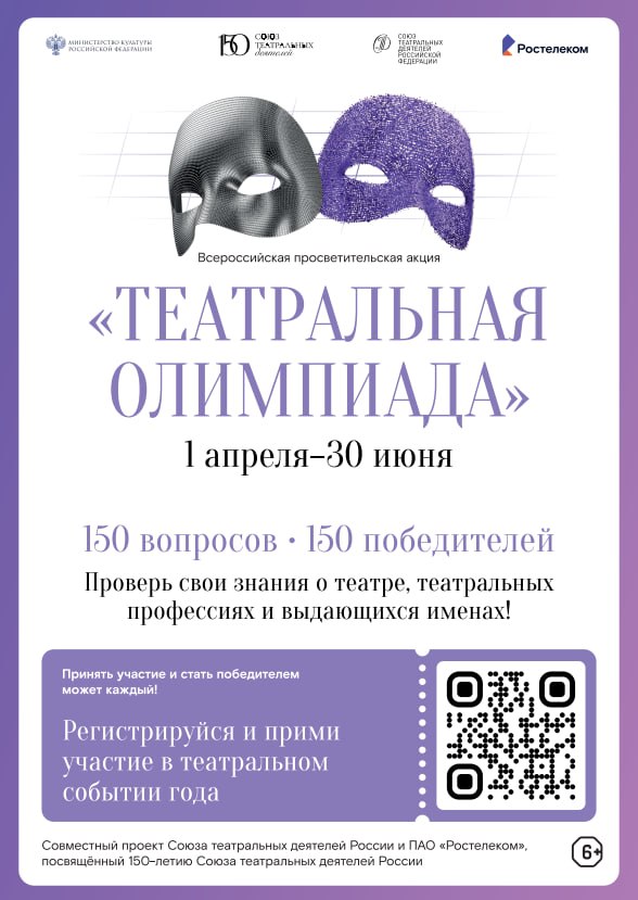 На образовательной платформе «Ростелеком Лицей» при поддержке Минкультуры России проходит «Театральная олимпиада», приуроченная к 150-летию Союза театральных деятелей России.