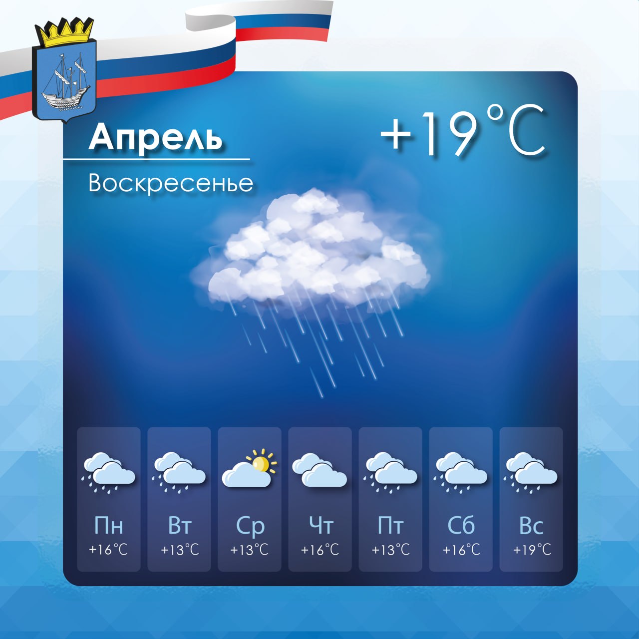 Минимальная температура воздуха +10°C около 6 часов утра, максимальная +19°C.