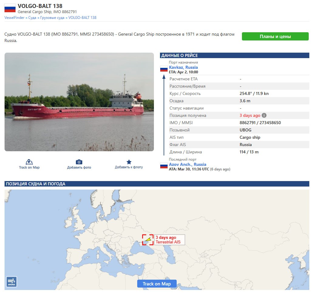 Согласно данным Marine Traffic, судно должно было прибыть в порт Кавказ еще 2 апреля. Почему 5 апреля сухогруз оказался у берегов Херсонской области, где и затонул - неизвестно.