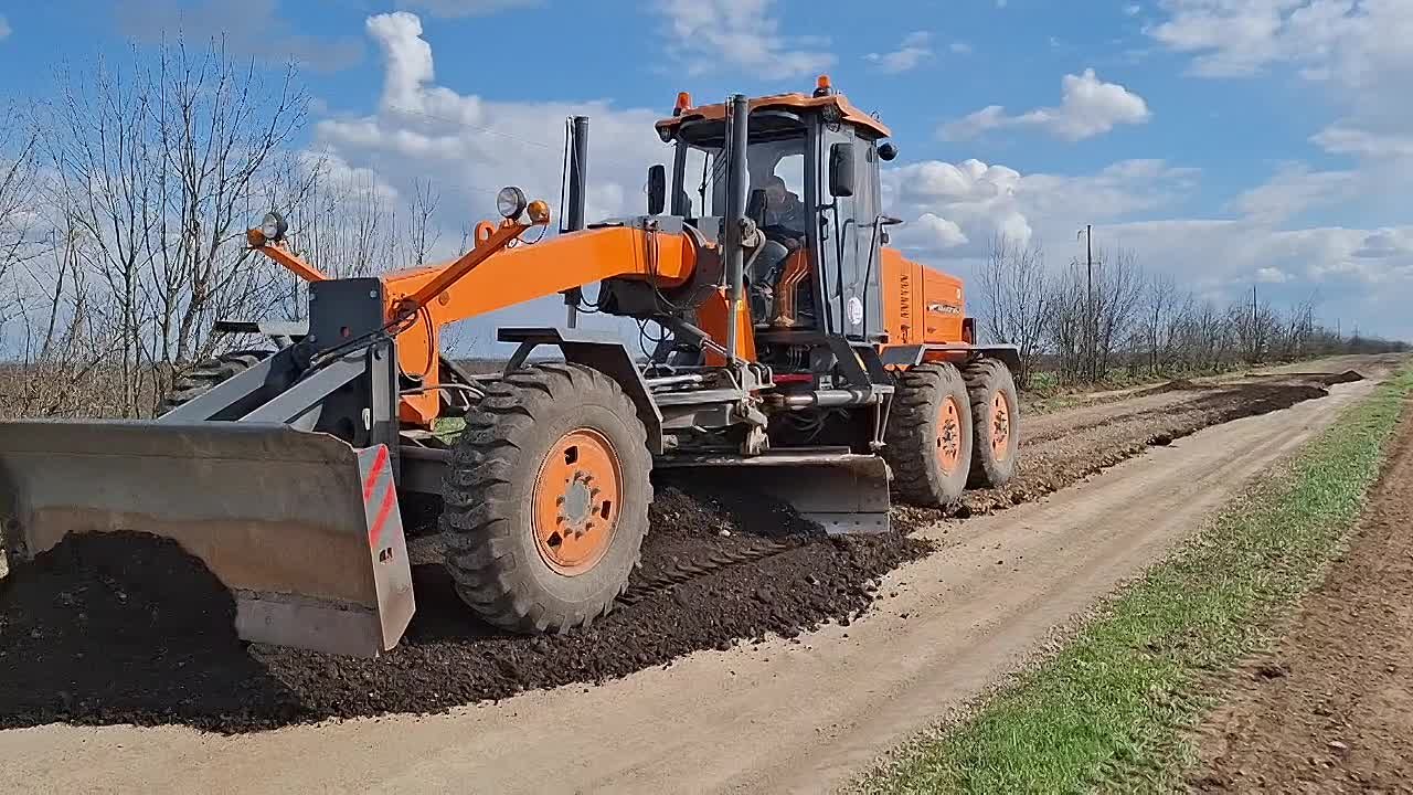На участке "Вольное – Новорогачинское" специалисты выравнивают поверхность методом планировки: удаляют неровности и заполняют впадины ломом асфальтобетона.