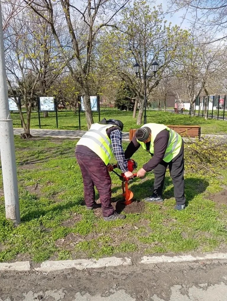 Начата подготовка к высадке саженцев туи в сквере Воинской Славы и на ул. Центральной.