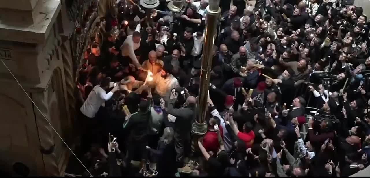 Благодатный огонь сошёл в Храме Гроба Господня в Иерусалиме