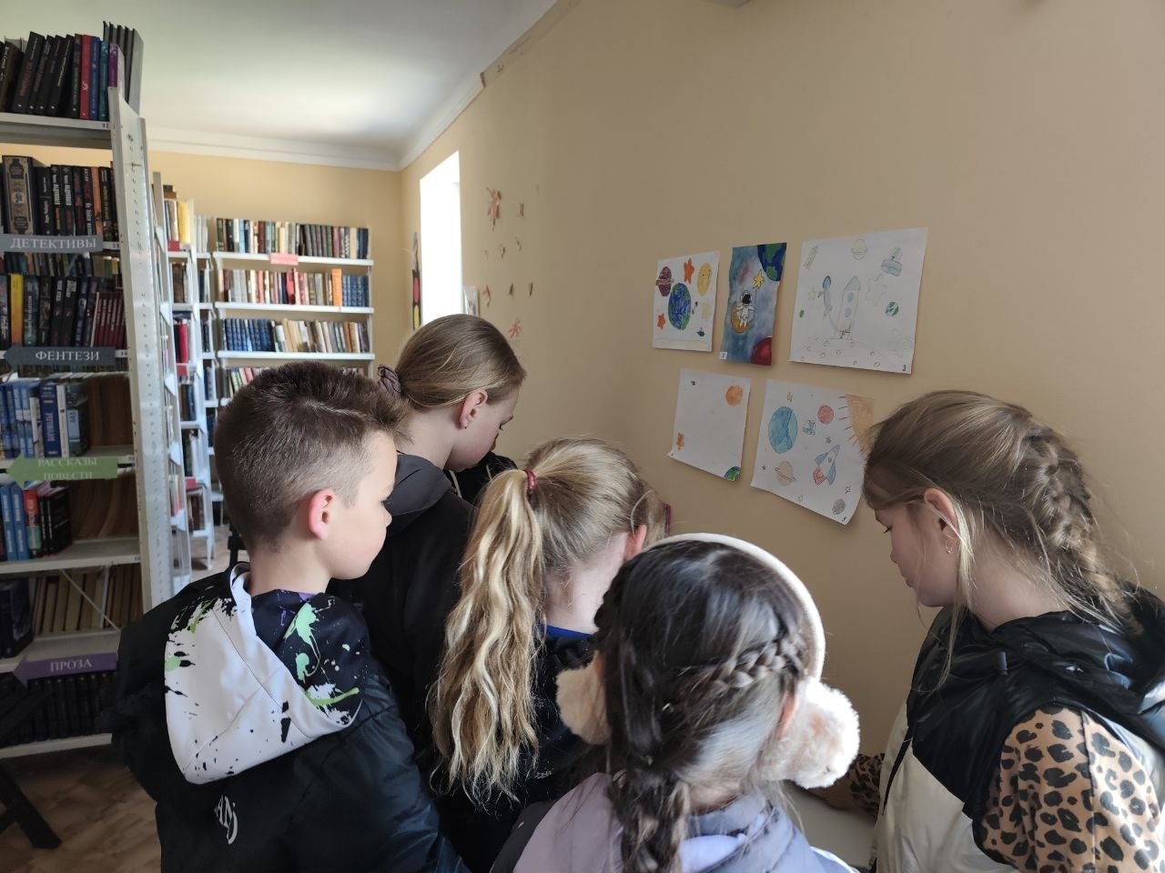 Кроме того, в библиотеке прошёл творческий конкурс на тему космоса. Ребята проявили фантазию, старание и креативность, нарисовав яркие и интересные работы.