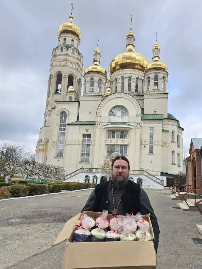 Перед отправкой всё, как положено, освятили: куличи, яйца и другие продукты. В подготовке участвовали священнослужители и представители военного отдела Крымской митрополии.