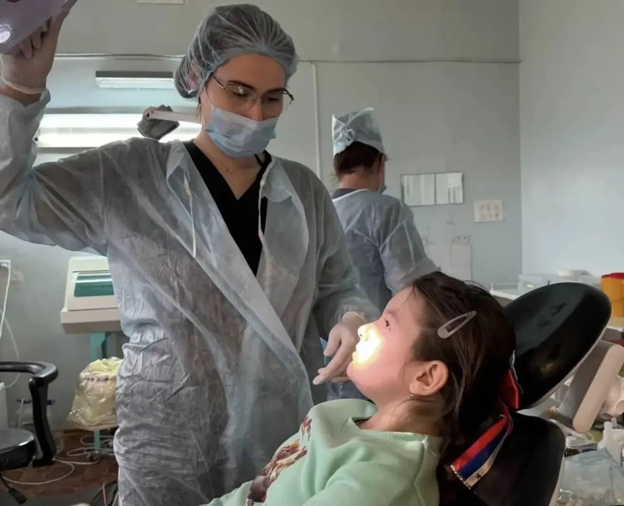 «Приехала в Херсонскую область во второй раз. Спрос на помощь зубных врачей здесь оказался высоким: в среднем мы принимаем 20-30 человек в день. Это и взрослые, и дети», — рассказала врач-стоматолог Адыгейской республиканской клинической стоматологической поликлиники Таман Щамхалова.